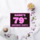 The front of this bold and fun seventy-ninth birthday celebration/party foil invitation card features a personalized name, a large number “79th”, the message “BIRTHDAY PARTY!”, and a border, all featuring a girly dark pink and light pink lines pattern. The back features personalized details about the event, such as the date, time, venue, and any other relevant information. Customizable invitations like these might be used to invite attendees/guests to a birthday gathering being held to celebrate somebody’s 79th birthday. [~Z0000597]