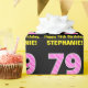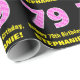 This joyful and fun birthday-themed wrapping paper design features a large number "79" with a light pink and dark pink striped pattern containing heart shapes. It also features the birthday greeting message "Happy 79th Birthday,", and a customizable recipient name. Wrapping paper like this might be used when giving a gift or present in honor of somebody’s 79th birthday. It might also be a fun choice for somebody who has a birthday that falls on Valentine's Day (Feb. 14), due to its loving heart symbols and colors. [~Z0000435]