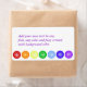 The seven main chakra colors and symbols are lined up on this lovely label design, and you can make the background color anything at all!
