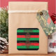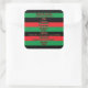 A Kwanzaa sticker that states the seven principles of the holiday and their meaning in the colors of green, black and red