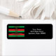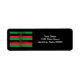 A Kwanzaa mailing label that states the seven principles of the holiday and their meaning in the colors of green, black and red