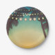 7" Round Paper Plate Beach Sunset Palm Trees Strin