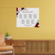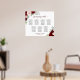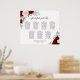 This 7 table wedding seating chart has space for 70 guests with 10 seats per table. The beautiful boho chic design features hand painted watercolor roses in shades of crimson red, burgundy, and blush pink, surrounded by eucalyptus leaves and garden greenery. The title is printed in elegant script calligraphy and there is space for the names of the couple and wedding date below. Wonderful way to add elegance and rustic style to your wedding reception while making it easy for your guests to find their assigned seats.