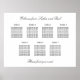 7 Table Elegant Minimalist Seating Chart, please personalize the names of the couple and the names of the guests along with any of the other text that you may wish to personalize. An elegant seating chart featuring stylish black text in a clean minimalistic layout on a white background.