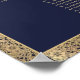 A vintage, elegant seating chart with 7 tables, recommended for a wedding with navy and gold wedding colors. The background is navy blue. It has floral golden borders with intricate wild roses decorations. All text is golden. The word Welcome in the upper part is written in an elegant calligraphic script, the rest in caps.