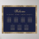 7 Table Navy Blue Gold Roses Script Seating Chart