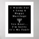 Featuring a delightful design our Funny Wedding Poster is sure to capture everyone's attention. The poster showcases seven words of humorous advice for a long and happy marriage: "Yes Dear, I'm Sorry, It's My Fault." These words serve as a lighthearted reminder of the importance of communication, understanding, and a good sense of humor in a relationship.