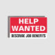 This 7" x 12" "Help Wanted" red car magnet is a great way to let people know that you are hiring! This small car magnet is fully customizable, from the words to the background colors. This car magnet is wind and weather resistant up to 75 MPH. When using magnetic signs remove and wipe down car doors often. Especially when driving through storms or salted roads. Failure to do so could cause paint damage to your car doors.