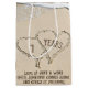 Pair of hearts in beach sand for 7th wedding anniversary.