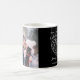 7th anniversary black onyx heart personalized photo mug. The design features white script typography on with your names and the words celebration of 7 year of love in script style font and a line art heart gemstone. Personalize with your own photo, names and anniversary wedding dates. The first wedding anniversary is associated with the gemstone black onyx and the heart symbolizes love. Other matching wedding anniversary gifts and paperware items available. Line art and design by www.mylittleeden.com on zazzle.