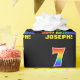 This colorful, cheerful, and fun birthday themed wrapping paper design features a large number "7" and the message "HAPPY BIRTHDAY,", both having a rainbow spectrum gradient inspired pattern coloring, along with a bold yellow custom recipient name. The background is colored black. Fun wrapping paper like this could be used when wrapping a birthday present or gift being given to somebody who is celebrating their seventh birthday. [~Z0000475]