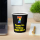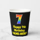 This fun and exciting birthday themed paper cup design features a large number “7” with a rainbow spectrum gradient inspired pattern, along with the message “Happy 7th Birthday,”, and an editable name. It also has a black-colored background. Vibrant, colorful paper cups like this might be fun to use at a birthday party being held to celebrate somebody’s 7th birthday. [~Z0000537]