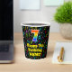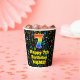 This exciting and colorful music themed birthday paper cup design features a large number “7” with a rainbow spectrum gradient inspired pattern, along with the message “Happy 7th Birthday,”, and an editable name. The background features an exciting and colorful pattern of various music notes and symbols of different sizes and colors. Vibrant, colorful paper cups like this might be fun to have at a birthday celebration/party being held in celebration of somebody’s 7th birthday. [~Z0000541]