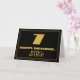 The front of this vintage look, Roaring Twenties inspired birthday-themed greeting card design features a large art deco appearance inspired number "7", the message "HAPPY BIRTHDAY,", a customizable name, and a border pattern consisting of lines. The front also features a black-colored background. The inside features a custom birthday greeting message, or could perhaps be cleared and left blank if a message is to be written by hand instead. A customizable birthday card like this might be a fun way to send a message in celebration of somebody’s seventh birthday. [~Z0000506]