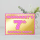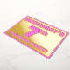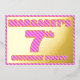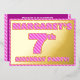 The front of this bold and fun seventh birthday celebration/party foil announcement card features a custom name, a large number “7th”, the message “BIRTHDAY PARTY!”, and a border, all featuring a girly dark pink and light pink lines pattern. The back features personalized details about the event, such as the date, time, venue, and any other information that may be useful. Personalized invitations like these might be used to invite guests to a birthday gathering being held to honor somebody’s 7th birthday. [~Z0000597]