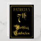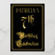 The front of this opulent and luxurious foil seventh birthday party/celebration invitation design features the message “7th Birthday Celebration” in elegant script-style text. It also has a personalized name. The background of the front is colored black by default (although it can be customized to a different color). The back features personalized details about the event, such as the date, time, location, and any other relevant information. Fancy, ornate, customized invitations like these might be used to invite guests to a birthday party being held to honor somebody’s 7th birthday. [~Z0000589]