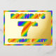 The front of this fun and joyful seventh birthday celebration/party foil invitation card features a customizable name, a large number “7th”, the message “BIRTHDAY PARTY!”, and a border, all featuring an eye-catching, colorful, rainbow spectrum inspired gradient pattern. The back features personalized details about the event, such as the date, time, location/venue, and any other information that may be important. Vibrant, upbeat, customizable invitations like these might be used to invite guests to a birthday gathering being held in celebration of somebody’s 7th birthday. [~Z0000593]
