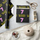This joyful and fun birthday themed wrapping paper design features a large number "7" having a dark pink and light pink stripes pattern containing heart shapes. It also features the birthday greeting message "Happy 7th Birthday,", and an editable recipient name. Wrapping paper like this might be used when giving a gift or present in honor of somebody’s 7th birthday. [~Z0000435]
