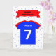 7th birthday red blue sports shirt personalized card