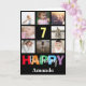 7th Happy Birthday Photo Collage Modern Black Card with personalized name. For further customization, please click the "Customize it" button and use our design tool to modify this template.