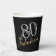 Elegant 80 and Fabulous White Script Birthday Paper Cups. Elegant design with trendy script in white and golden colors for a woman.