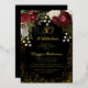 Elegant and classy dark red and burgundy floral roses with seed pearls on a splatter frame "80 and Fabulous" birthday party design with a black background by Holiday Hearts Designs. All text is real gold foil and the splatter frame is a combination of gold foil and gold-toned gradient. Seed pearls are faux printed.