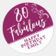 80 and Fabulous Script Magenta 80th Birthday Classic Round Sticker