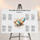 A versatile and easy to personalize 8 x 10 tables or 80 guest seating template which has the graphic of iridescent shimmering blue, pink, brown and ivory colored seashells resting on a sandy beach. This generative content graphic is set against a white background that has bold black templates for your guests names. These are ideal for nautical; beach or marine theme weddings, celebrations and events.