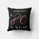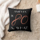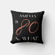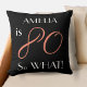 80 so what Funny Black Pink Script 80th Birthday Throw Pillow. Black and elegant 80th birthday pillow with a funny, positive and motivational quote 80 So what. The background is black. Personalize the pillow with a name and also change all the text if you want. Great birthday gift for a woman or a man who celebrates 80 years and has a sense of humor.