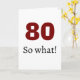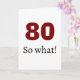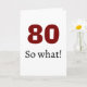 80 so what Funny Quote Humor 80th Birthday Card. A greeting card for someone celebrating 80th birthday. It comes with a funny quote 80 so what, and is perfect for a person with a sense of humor.