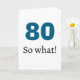 80 so what Funny Quote Humor 80th Birthday Card. A greeting card for someone celebrating 80th birthday. It comes with a funny quote 80 so what, and is perfect for a person with a sense of humor.