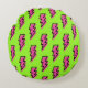 80's/90's Neon Green & Pink Lightning Bolt Pattern Round Pillow