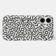 This phone case features a dynamic, high-contrast pattern reminiscent of 1980s pop art and abstract expressionism. Bold, graphic black lines, squiggles, circles, and geometric shapes are randomly scattered across a clean white background. Perfect for fans of retro, vaporwave, or minimalist graphic design with an energetic feel.