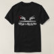 My 11 yo wore adult XL (5’7” 165#). The 8yo is small framed. She wore adult small and tied it in the back. Grandma wore adult large with long sleeve shirt underneath. Tall girl adult medium. Dark haired male adult large. Good quality dark Heather gray, Gildan brand shirt. -it was next up from basic choice and cost about $20 per shirt. Not too thick or thin. Washed and dried well, no major shrinkage. Not see-through. Can wear a bra under it fine. Screen print is just as shown and well done, front and back.