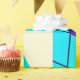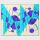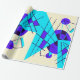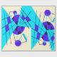 A neon blue geometric 80s-themed retro wrapping paper design for any occasion, especially birthdays and holidays.