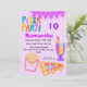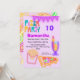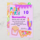 Get ready for a totally radical 10th birthday party! This electrifying 5x7 invitation bursts with 80s neon vibes, featuring a fun pizza, french fries, drinks, and bunting with custom text. The vibrant "PIZZA PARTY" headline in retro font sets the mood for an unforgettable celebration.