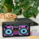 Totally tubular and vibrant boombox with the colors and design echoing that 80's/90's vibe. Customize it with your own name or whatever!
