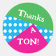 Like totally thanks, man! Retro 1980s inspired - oddly-shaped blocks of bold and bright colors mixed with white polka dots on a blue background. Very different and fun, but also a sticker label to seal off your wrapped gifts or envelopes. It is fully customizable. Now "get into the groove" and thank someone!