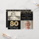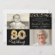 80th Birthday 2 Photos Black Gold Balloons Script Invitation