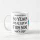 Personalized 80th birthday celebration funny coffee mug gift. Party fun gift for those 80 year old men and women. A unique special age milestone for family or friends with "I've lived on this earth for 80 years and all i got was this mug, what a cheek!" Add their name and date of birth to this funny cheeky style gift. Cute and bold typography for those entering their 80s. Create your own special surprise using the template supplied. Excellent for a mother or father, brother or sister and of course that best friend with a sense of humor.