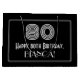 This vintage style 1920s/1930s look inspired birthday giftbag design features a large art deco appearance inspired number "80", the message "Happy 80th Birthday,", an editable name, and a border pattern consisting of thin lines. It also has a black-colored background. A birthday themed gift bag like this may be used to wrap a gift or present being given to somebody who is celebrating their eightieth birthday. [~Z0000497]