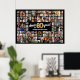 Elegant 80th birthday party poster sign featuring a stylish black background that can be changed to any color, a 100 photo collage of memories through the years, the saying 'cheers to 80 years', and their name.