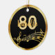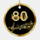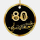 Black background with faux gold music notes for a 80th birthday party. With a faux gold frame. Templates for age and name. The name is written in a hand-lettered style script. Golden letters and number. For both him and her. Great as a birthday gift or a keepsake.