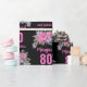 80th birthday black pink floral Wrapping Paper. Personalize with name, age and text.