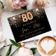 A girly and trendy Save the Date for a 80th birthday party. A black background decorated with faux gold glitter. Templates for a date and name and text. Golden colored letters. The text: Save the Date is written with a large trendy hand lettered style script.