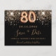 80th birthday black rose gold save the date announcement postcard