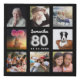 A unique gift for a 80th birthday, celebrating her life with a collage of 8 of your own photos, pictures. Personalize and add her name and a date. A chic black background. The name is written with a modern hand lettered style script, number 80 with a faux silver balloon style font.