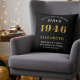 This custom accent pillow features the striking, bold text "BORN 1946", for that person loved for 80 years (and counting)" and allows you to add a custom name (e.g., Grandma, Grandpa, Mom, Dad, etc.) at the bottom, making it a truly unique keepsake.