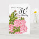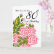 80th Birthday Card With Pink Roses