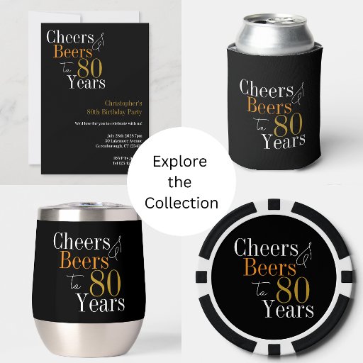 80th Birthday Party Cheers and Beers Black GoldDesigned by Only The Moon